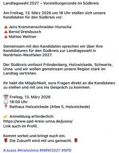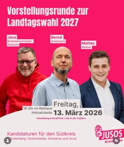 Termine, Aktionen und Exkursionen waren Themen im Rahmen der Jahresplanung 2026. Hierzu gehören auch die Vorbereitungen zur Landtagswahl NRW 2027. Aber auch die Umsetzung der Beschlüsse des Stadtverbandsparteitags vom Novemver 2025,