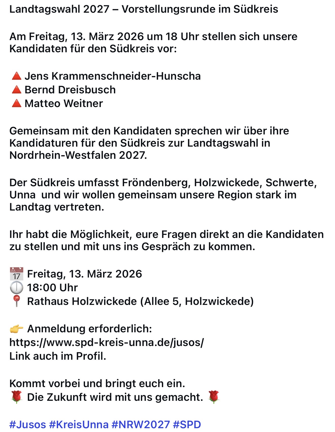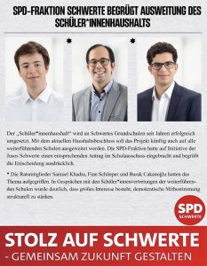 Lassen Sie uns gemeinsam dafür sorgen, dass Schwerte auch in schwierigen Zeiten sozial gerecht, verantwortungsvoll und zukunftsfähig bleibt.