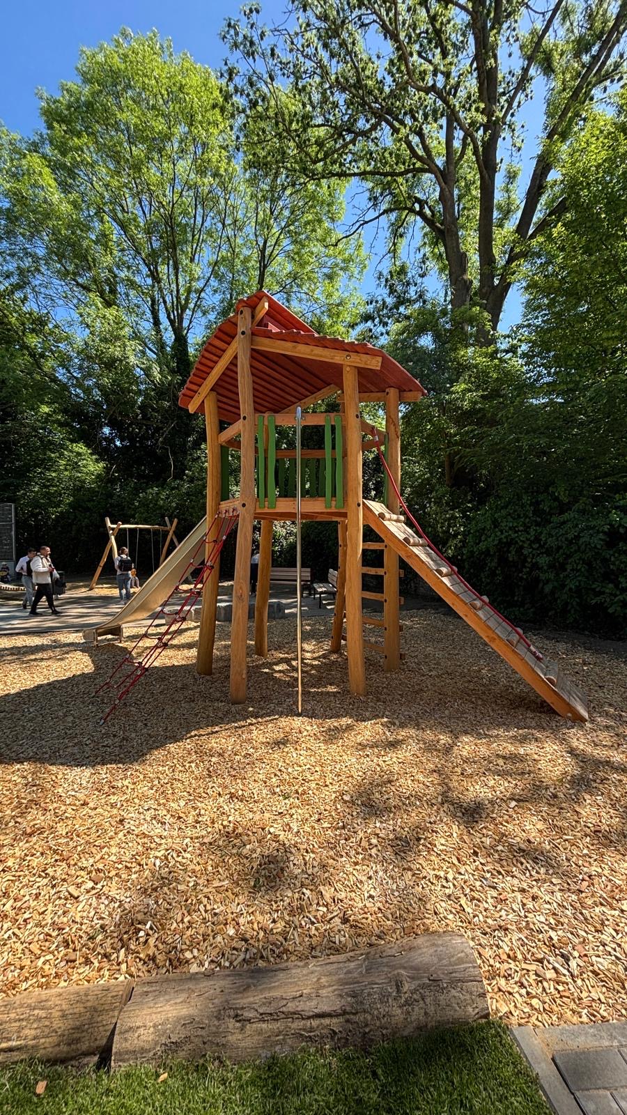 Basierend auf den zahlreichen Ideen aus der Bürgerbeteiligung im letzten Jahr wurden neue Spielgeräte installiert, darunter eine Babyschaukel, ein Trampolin und eine neue Spielkombination. Auch die Sitzbereiche und die Umgebung wurden neu und attraktiver gestaltet.