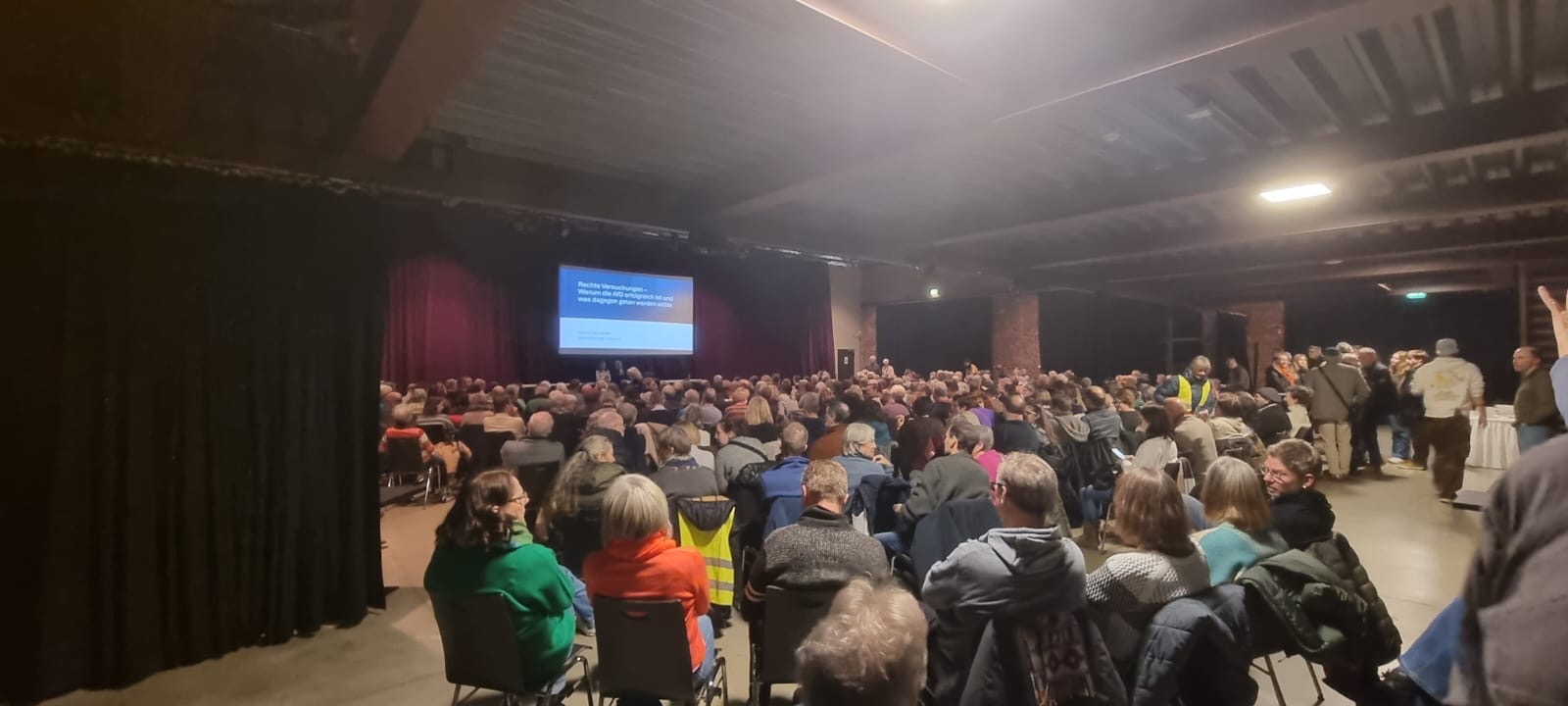 Ca. 400 Schwerter*innen in der Rohrmeisterei sind der Einladung des Bündnis gefolgt
