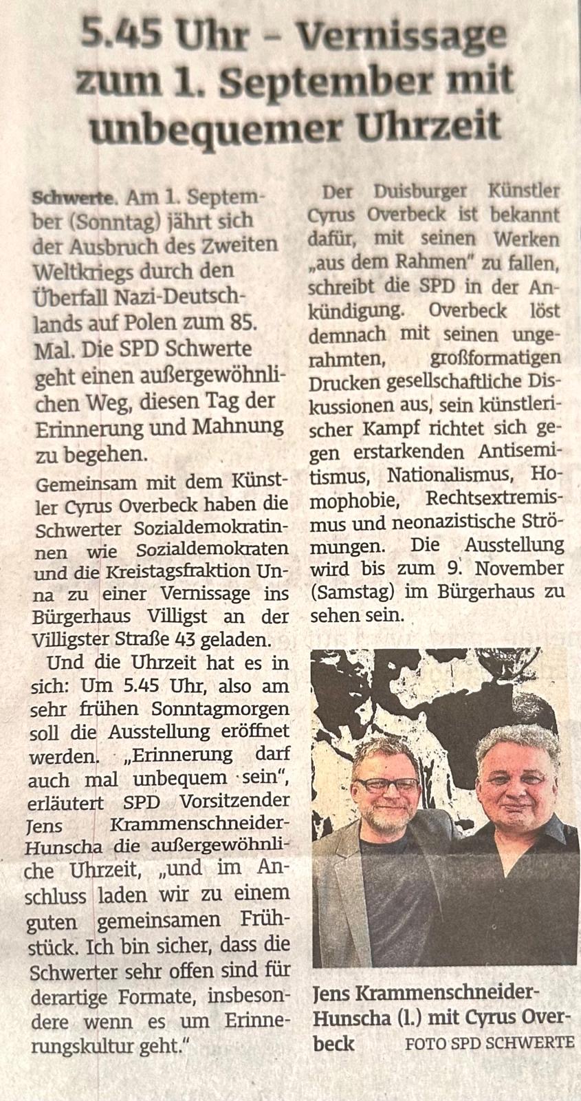 Jens Krammenschneider-Hunscha freut sich auf rege Teilnahme zu dieser ungewöhnlichen Vernissage zu einer sehr unbequemen Uhrzeit.