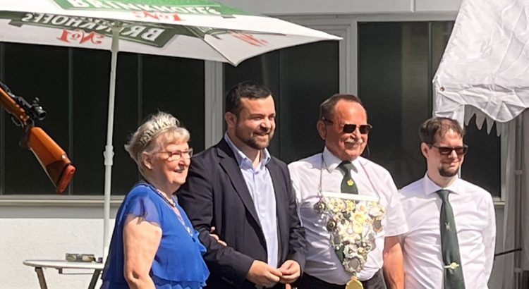 Die SPD war mit Bürgermeister Dimitrios Bürgermeister, dem Fraktionsvorsitzenden Marc Seelbach und Angelika Schröder vor Ort und bedankte sich bei dem scheidenden Königspaar Helmut und Regina und wünschte dem neuen Königspaar eine erfolgreiche Regentschaft.