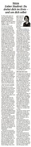 Sehr geehrter Herr Bürgermeister,liebe Kolleginnen und Kollegen, verehrte Mitarbeiterinnen und Mitarbeiter der Stadtverwaltung,liebe Bürgerinnen und Bürger, liebe Vertreterinnen und Vertreter der Presse, im ganzen Land steht die breite Gesellschaft auf und ruft: „Wehrt Euch! Leistet Widerstand gegen den Faschismus in diesem Land!“.