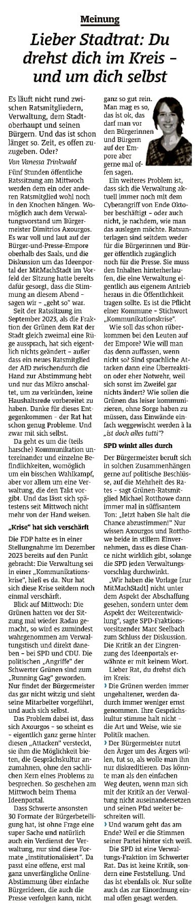 Der Dank meiner Fraktion gilt abschließend den Mitarbeitenden der Verwaltung und natürlich insbesondere der Kämmerei, die unter den schwierigen Bedingungen des Cyberangriffes den Haushalt zusammenstellen musste.