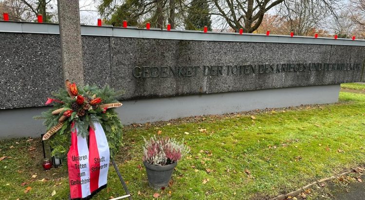 Wir gedenken der Soldaten, die in den Weltkriegen starben, der Menschen, die durch Kriegshandlungen oder danach in Gefangenschaft, als Vertriebene und Flüchtlinge ihr Leben verloren.