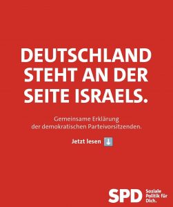 Wir, die wir im demokratischen Wettbewerb miteinander stehen, sind heute geeint in unserer Solidarität mit dem israelischen Volk und dem Staat Israel.