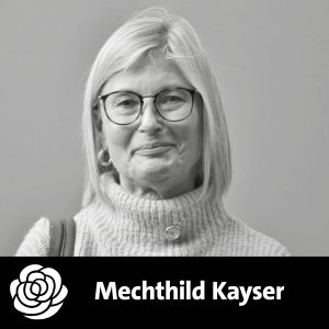 Mechthild war Mitglied im Mieterverein. Die steigenden Lebenshaltungskosten und Mieten für Geringverdiener*innen setzte sie immer und immer wieder auf unsere Agenda. Sozialer Wohnungsbau, aber auch so viele Impulse jenseits der großen öffentlichen Bühne, waren ihr Anliegen.