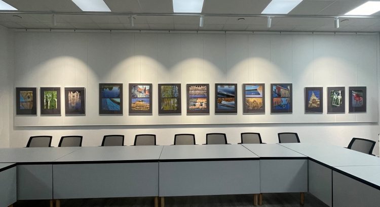 „Spiegelungen“ ist der Titel der Ausstellung, denn es handelt sich nicht um Urlaubsschnappschüsse, sondern um eine Serie künstlerischer Fotografien: die Verbindung ist das Motiv der Spiegelung, das durch Wasser oder auch Glas erzeugt wird.