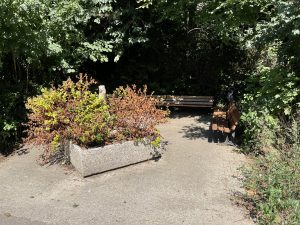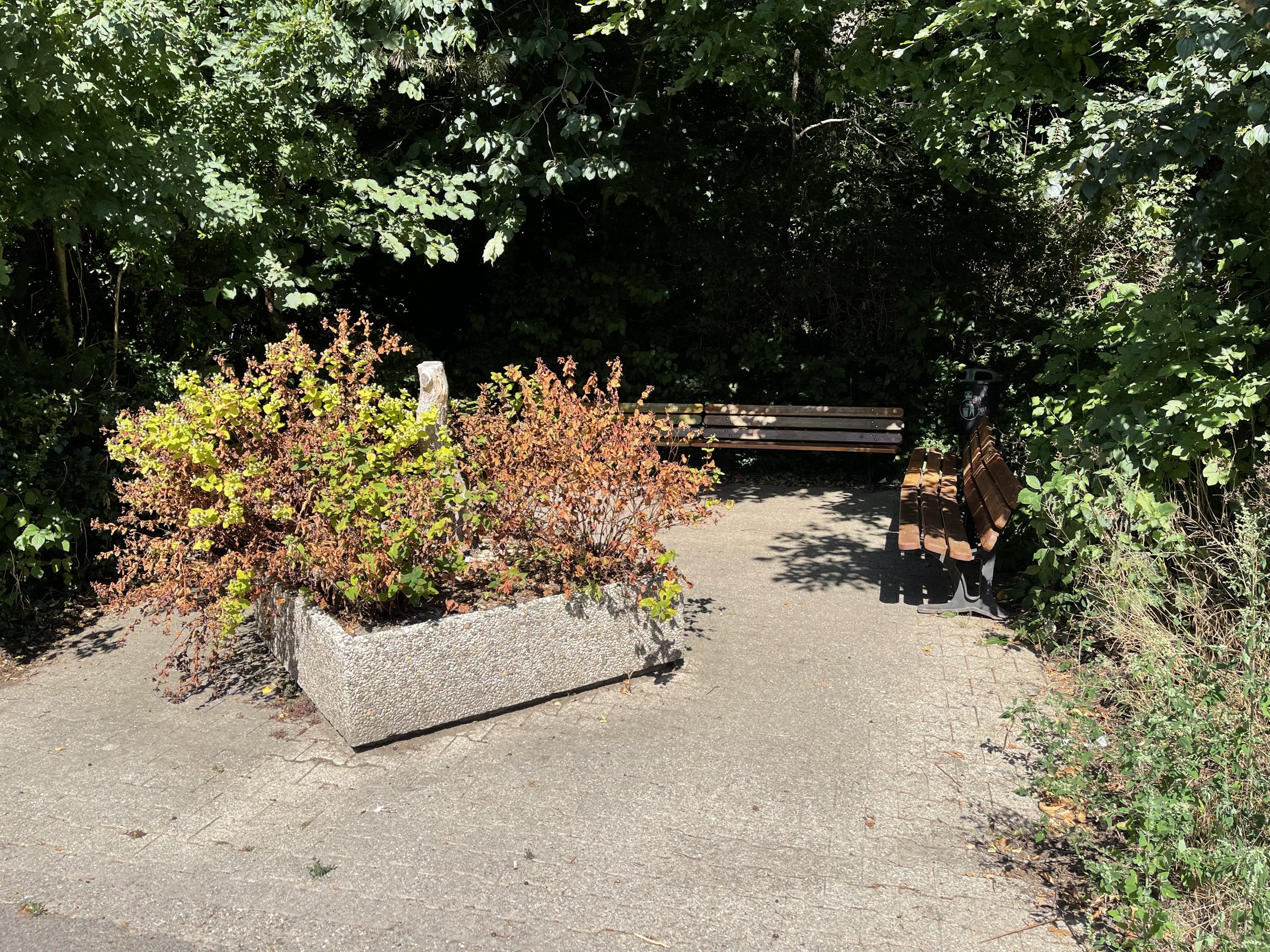 Die Sitzecke hinter dem AWO-Seniorenheim, die gerne von den SenioInnen und deren Angehörigen genutzt wird, bedarf einer Aufwertung.