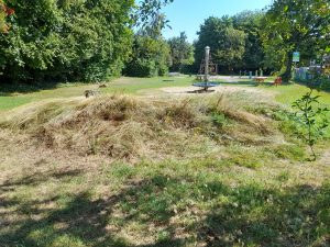 Hierdurch wurde der Spielplatz in seiner äußeren Erscheinung enorm aufgewertet.( s. Foto) Leider benutzen aber Bürger*innen den Platz zur Ablage von Rasen und Sträuerschnitt und verunstalten diesen schönen Spielplatz.(s. Foto).