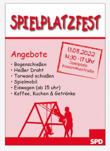SPD richtet wieder das Spielplatzfest auf dem Kopernikussspielplatz aus.