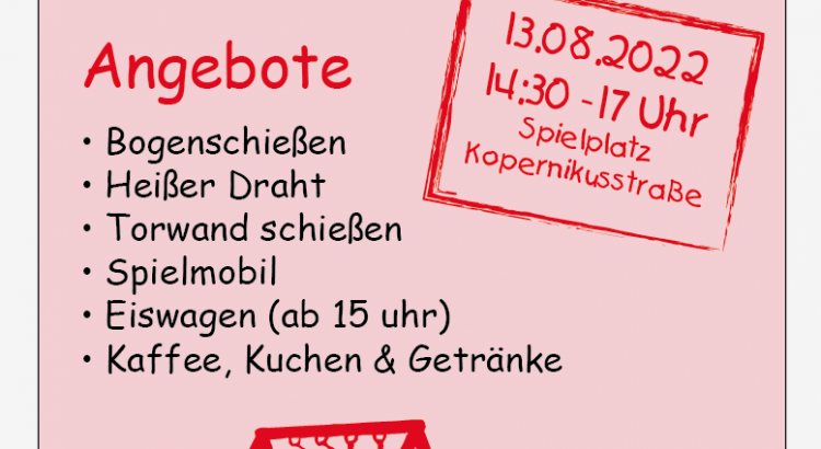 Der Schützenverein Schwerterheide unterstützt wieder mit dem Bogenschießen für die Kinder, die Stadt stellt das Spielmobil zur Verfügung, von den Stadtwerken wird die Torwand und der „heiße Draht“ vorhanden sein und natürlich kommt nach alter Tradition auch wieder der Eiswagen.