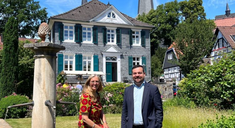 Foto: SPD-Schulausschuss Vorsitzende Claudia Belemann-Hülsmeyer und Schuldezernent Tim Frommeyer bei der TFG-Feier in der Rohrmeisterei