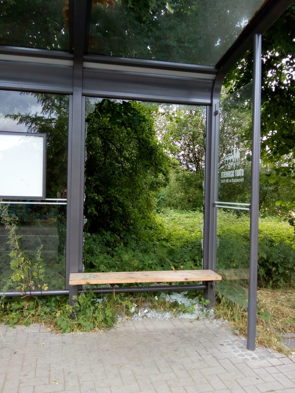 So gibt es einige zerstörte und ungepflegte Buswartehäuschen.